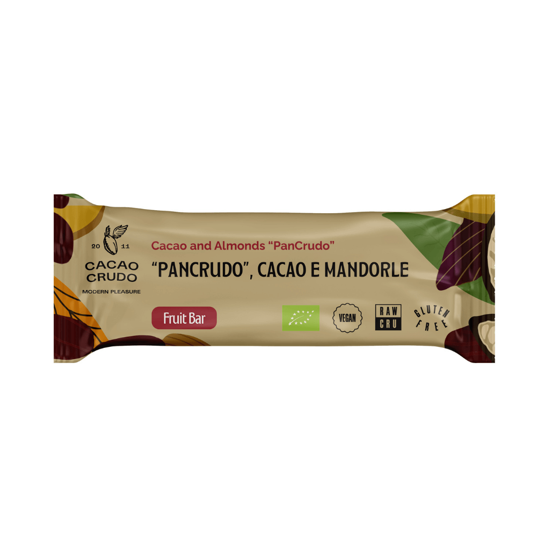 Cacao Crudo Bio Pancrudo- Schoko Frucht Riegel mit Datteln, Mandeln und Orangen Schale, Rohschokoladen Nibs