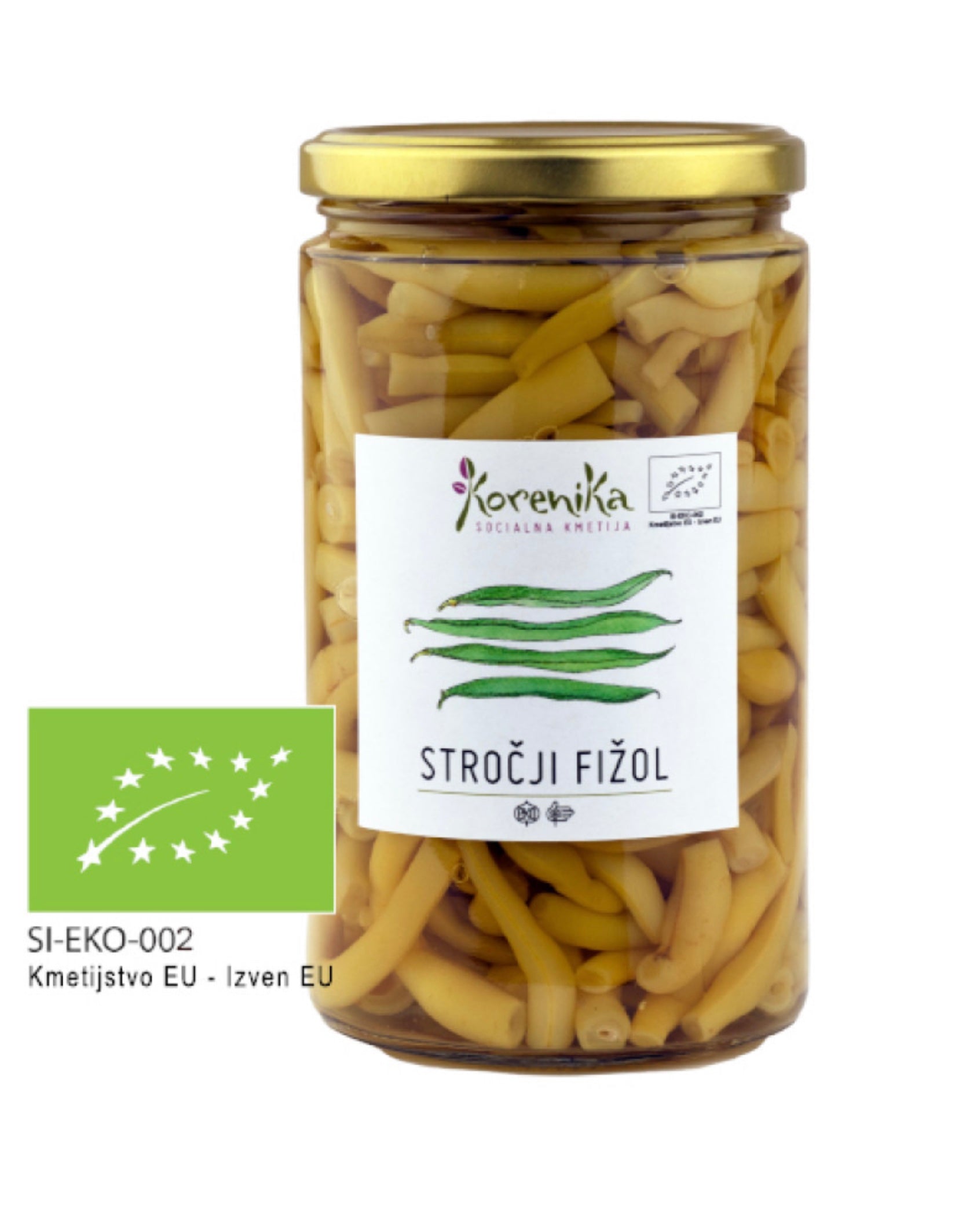 Die Bio Eingelegten Grünen Bohnen von Korenika werden saisonal frisch geerntet, leicht eingekocht und in Essig eingelegt, damit sie knackig bleiben. Die Bohnen stammen direkt vom Bio-Bauernhof und bieten natürlichen, hochwertigen Genuss.
