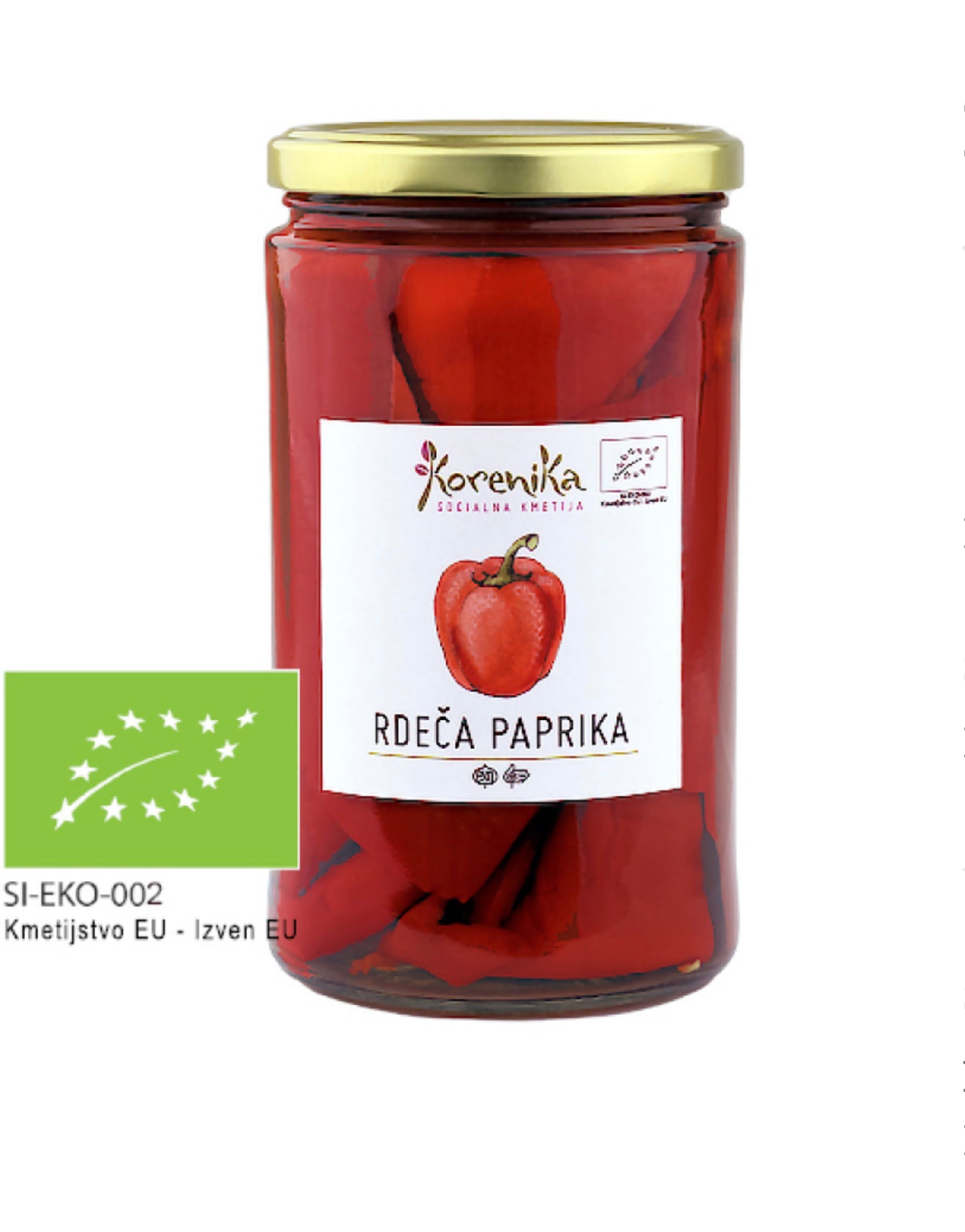 Die Eingelegten Paprika Filets von Korenika werden nachhaltig auf dem eigenen Biohof angebaut. Frisch, knackig und ohne künstliche Konservierungsmittel – perfekt als Vorspeise, Beilage beim Grillen oder in Salaten. Die Paprika werden über offenem Feuer geröstet und sorgfältig von Hand geschält, um ihren intensiven Geschmack zu bewahren.