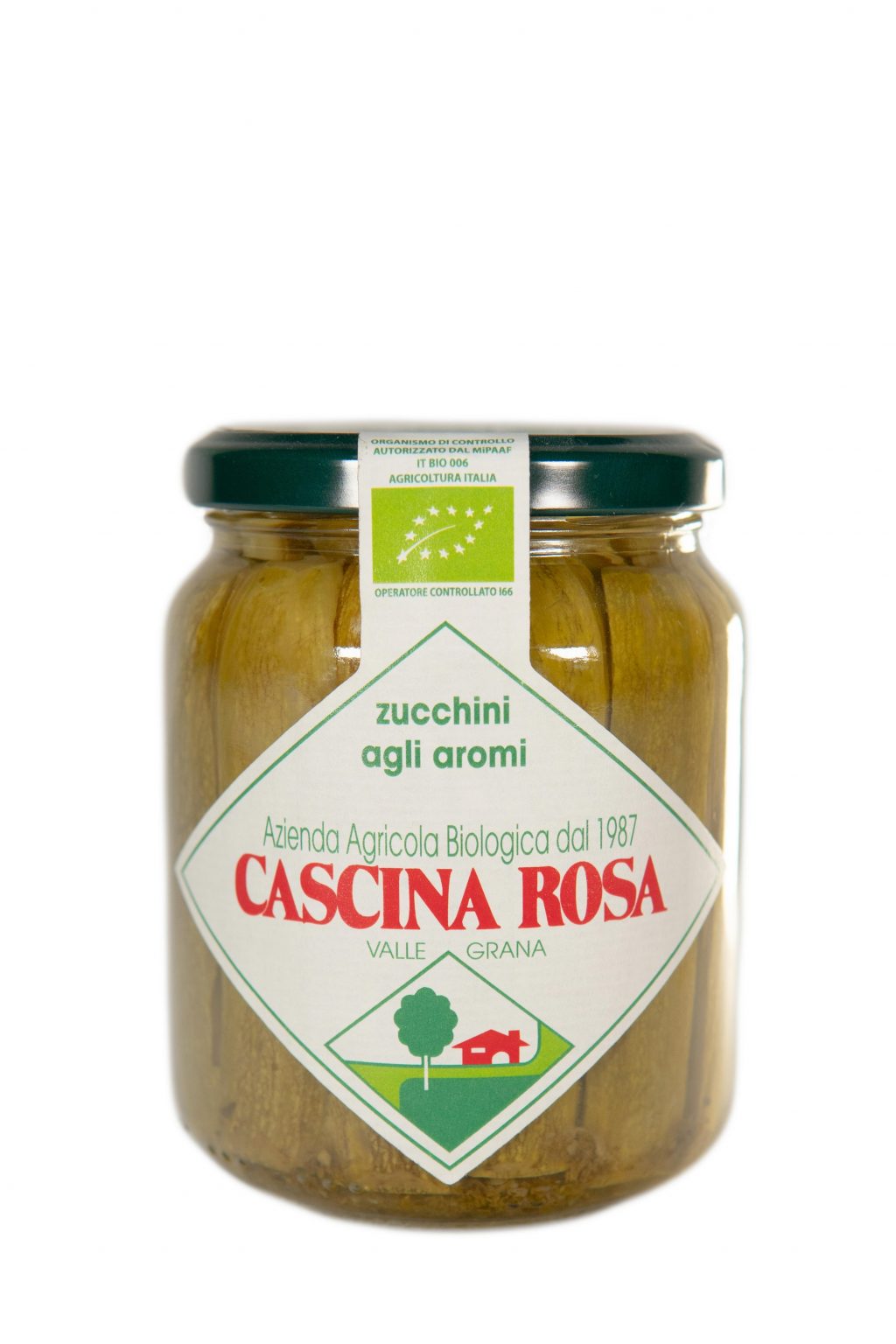*Zucchini, *Apfelessig, *Weisswein, *Extra Natives Olivenöl, *Lorbeerblatt, *Basilkum,* Caraglio Knoblauch, Salz